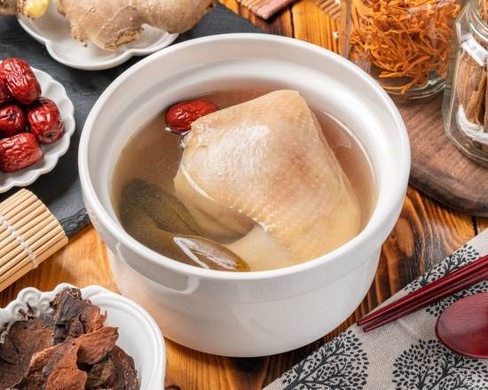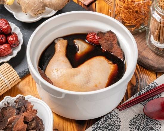 每一份湯品皆為一整隻帶骨雞腿,含有薑片、紅棗,及少許米酒調味